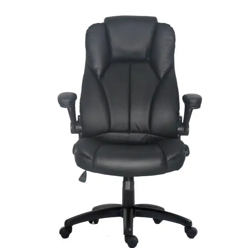 La silla de oficina Equip tiene una base estable con cinco ruedas y puede girar 360 grados. Esto permite una gran movilidad de la silla. Además la buena posición sentada mejora la eficiencia y la comodidad de su trabajo. Especificaciones: Generales: Tipo de asiento: Asiento acolchado Tipo de respaldo: Respaldo acolchado Color del asiento: Negro color de Respaldo: Negro Color de fotograma: Negro Color base: Negro Material del asiento: Imitación piel Material del respaldo: Imitación piel Reposabrazos: Si Tipo de reposabrazos: Reposabrazos acolchado Reposacabezas: No Diseño de plancha ergonómico: Si Ángulo de rotación: 360° Número de ruedas: 5 rueda(s) Cantidad: 1 Rueda de reenvío: Si País de origen: China Peso y dimensiones Ancho: 700 mm Profundidad: 730 mm Altura (min.): 114 cm Altura (máx.): 124 cm Peso: 14 kg Empaquetado Ancho del paquete: 590 mm Profundidad del paquete: 730 mm Altura del paquete: 300 mm Peso del paquete: 16 kg