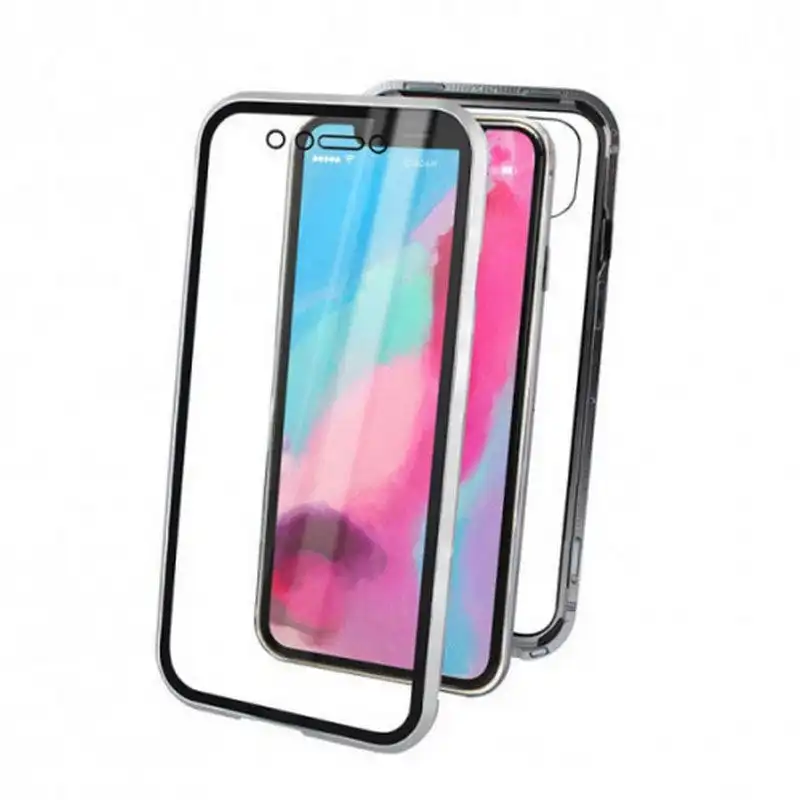 Compuesto por 2 partes que cubren la parte delantera y trasera de su teléfono esta funda de 360 ??° le ofrece una protección completa.La estructura de aluminio de color de esta carcasa así como el vidrio templado en la parte frontal y posterior del teléfono permiten una gran resistencia a los impactos y aportan un toque de originalidad a su teléfono. Características: El panel frontal de vidrio templado le permite ver y usar su teléfono a la perfección. La precisión táctil no se ve afectada. Su sistema de cierre magnético te permite instalar la carcasa de forma muy sencilla. Esta funda liviana se ajustará perfectamente a la forma de su móvil dejando fácil acceso a todos los puertos y funciones de usuario. Para teléfonos compatibles la carcasa no evita la carga inductiva. Especificaciones: Compatible con iPhone 11