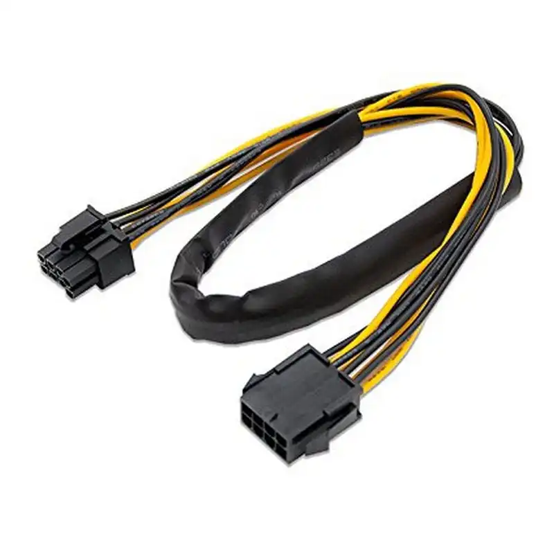 Cable de alimentación alargador para tarjeta gráfica con conexión PCI-e 6 + 2 pines. Conector PCI-e 8 pines hembra en un extremo y un conector 6+2 pines macho en el otroEspecificaciones Peso y dimensiones Ancho del paquete: 120 mm Profundidad del paquete: 20 mm Altura del paquete: 160 mm Peso del paquete: 53 g Volumen del paquete: 138 cm³ Características Longitud de cable: 0 5 m Conector 1: PCI-E (6+2 pin) Conector 2: PCI-E (8-pin) Género del conector: Macho/Hembra Factor de forma de conector 1: Derecho Factor de forma de conector 2: Derecho Color del producto: Multicolor Acorde RoHS: Si