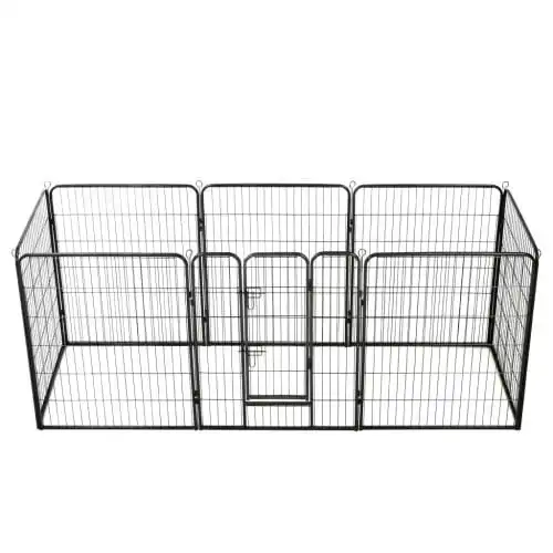Este parque para perros duradero y resistente a la intemperie está hecho de acero con recubrimiento en polvo resistente a la corrosión, lo que lo hace adecuado para uso en interiores y exteriores