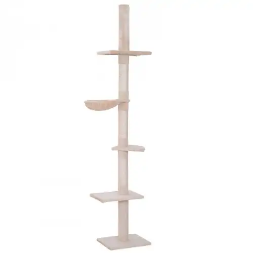 RASCADOR DE SUELO A TECHO: Rascador para gatos todo en uno con altura ajustable de 230 a 260 cm. Se puede fijar al techo con la barra de tensión incluida. Es un centro de actividades que aprovecha muy bien el espacio en vertical y permite que tus gatos puedan trepar