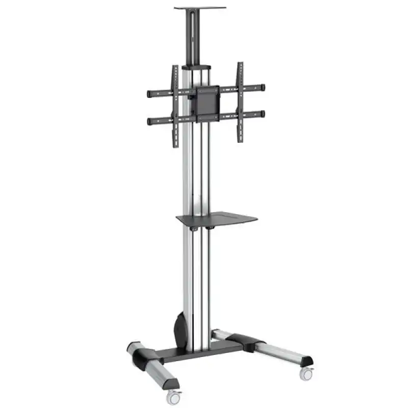 Cree un centro multimedia portátil mediante este carrito para TV compatible con televisores con pantalla plana de 32" a 75" Este carrito portátil para TV facilita la creación de un centro móvil multimedia lo cual constituye una solución práctica y que resulta económica para compartir equipos audiovisuales entre diferentes habitaciones. Con un diseño elegante y duradero el carrito para TV ofrece un soporte seguro para un televisor con pantalla entre 32" a 75" (capacidad máxima de peso de 40kg) y bandeja extraíble para multimedia en la que colocar su ordenador reproductor de medios o teclado. También incluye una bandeja para cámara que se utiliza durante conferencias web. Características: Desplace su centro multimedia de una habitación a otra Este carrito móvil para TV le ahorra el gasto de adquirir varios televisores de pantalla plana. Solo tiene que llevar rodando el carrito para TV entre salas de juntas o de reuniones a fin de compartir su equipo multimedia. El carrito ocupa poco espacio y le permite estar c...