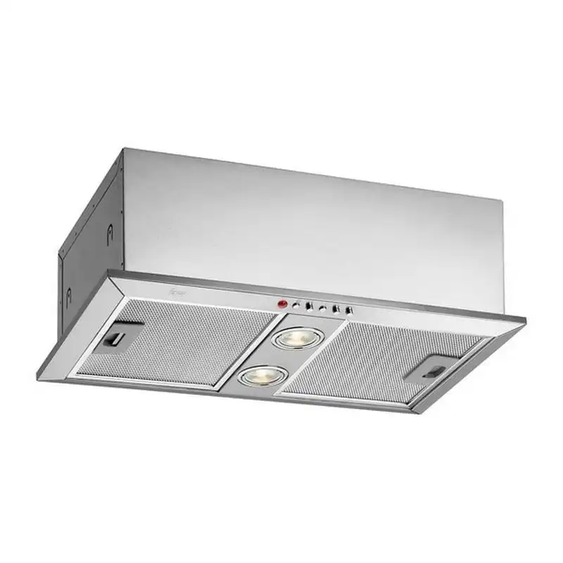 Conoce más acerca de la etiqueta de eficiencia energética o información del productoCampana integrable Teka GFH 55 de 55cm con motor de doble turbina grupo filtrante y 3 velocidades distintas de aspiración.Características Integrable en muebles de cocina Mandos pulsantes Tres velocidades 2 lámparas halógenas Piloto indicativo de funcionamiento Motor de doble turbina Capacidades de extracción: min.223 m3/h ? máx.329 m3/h Potencia sonora: min.62 dBA ? máx.69 dBA Posibilidad de funcionamiento en recirculación (filtro C3C)Especificaciones Teka GFH 55 Peso y dimensiones Ancho: 550 mm Profundidad: 310 mm Altura: 172 mm Control de energía Potencia del motor: 200 W Filtración Tipo de filtro de grasa: Metal Diseño Tipo: Encastrada Color del producto: Acero inoxidable Potencia de bombilla: 40 W Número de bombillas: 2 bombilla(s) Tipo de bombilla: Halógeno Tipo de control: Giratorio Número de motores: 2 Desempeño Máxima capacidad de extracción: 329 m³/h Tipo de extracción: Recirculación Número de velocidades: 3